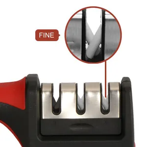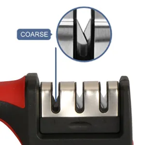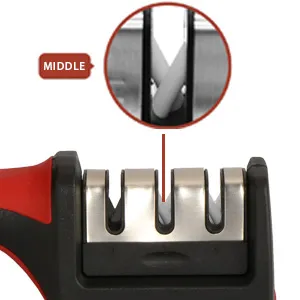 - 3 STAGE SHARPENING SYSTEM – Polish your cooking or outdoor blade to surgical sharpness with the manual 3 stage design, the 1st diamond sharpening rod repairs and straightens damaged blades before the 2nd slot sharpens to restore its V-shape. Finally, the 3rd slot fine tunes for a clean polish.